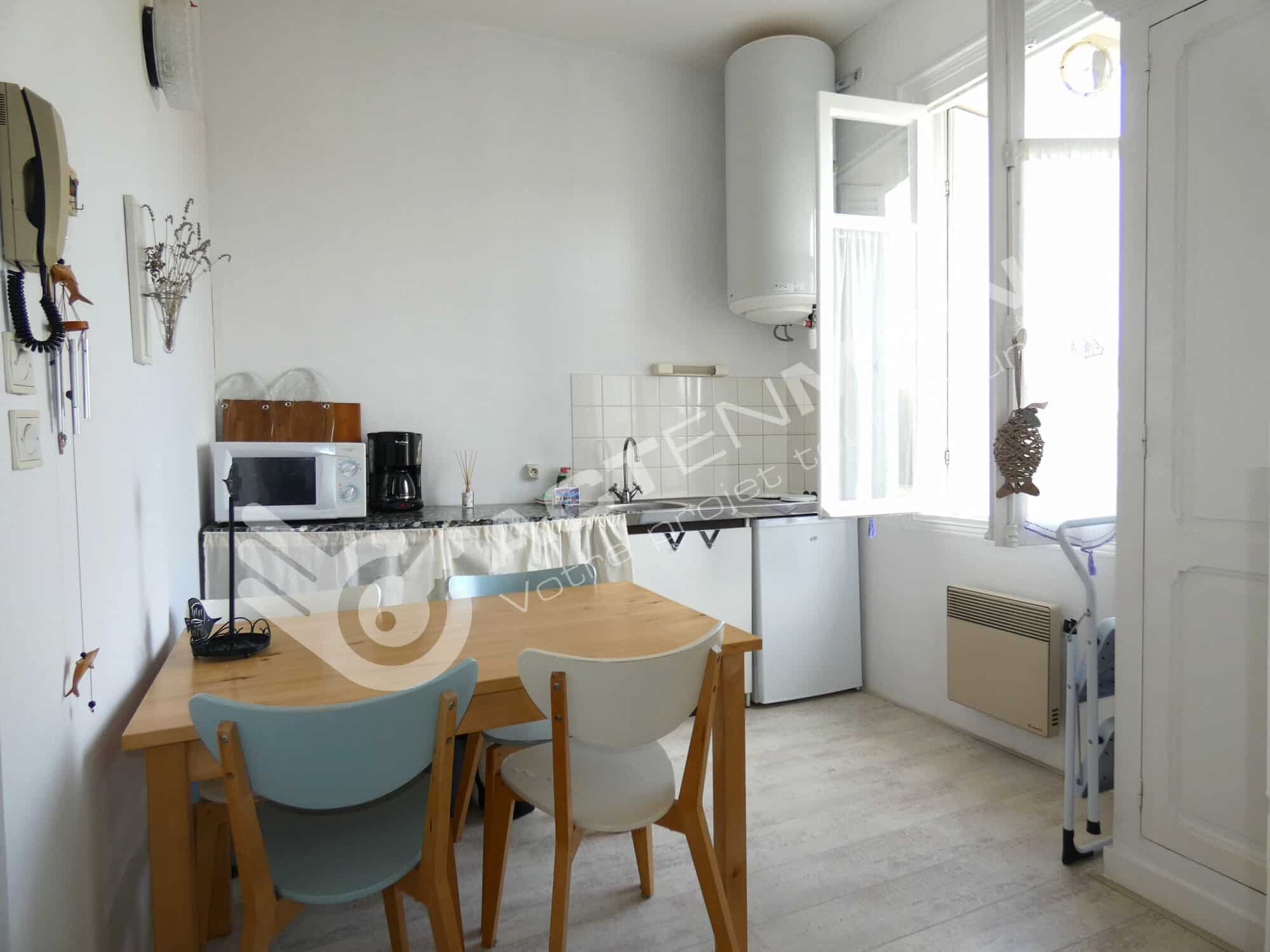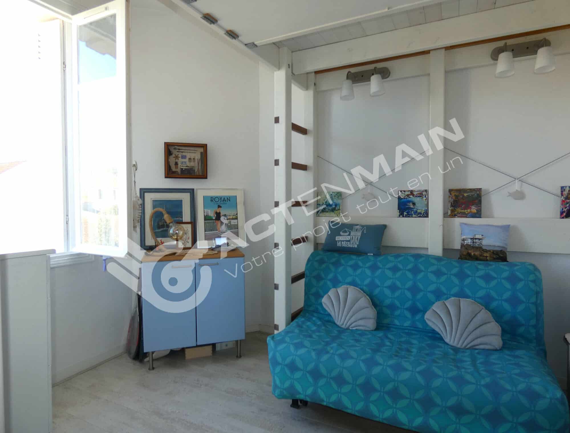 ACTENMAIN Royan, vous présente en exclusivité, à proximité de la plage du Pigeonnier, cet appartement lumineux, habitable immédiatement, comprenant : une entrée/dégagement, une cuisine indépendante avec placard, une salle de bain, une chambre/séjour, un WC. Vous serez séduit par cette copropriété de charme, au calme. L'appartement dispose d'une place de parking dans l'enceinte de la résidence. Le centre-ville de Royan ou le quartier de Pontaillac restent accessibles à pied ou à vélo.